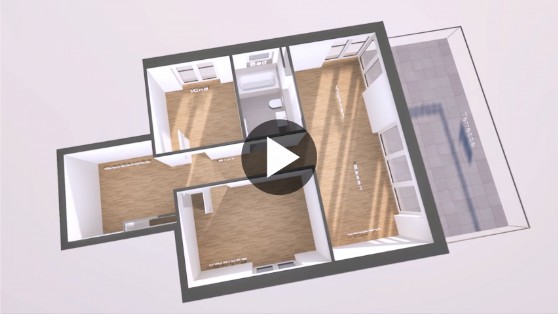 Drei Zimmer auf dem Papier - doch wie fließen sie ineinander? Wo liegen die Übergänge? Das 3D-Video führt durch die Wohnung, macht Proportionen sichtbar und zeigt die Räume so, wie sie erlebt werden: als Ganzes, nicht als einzelne Flächen.